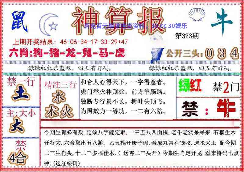 324期:电脑推算/正版解一肖输精光/玄机解一肖/六合皇五字